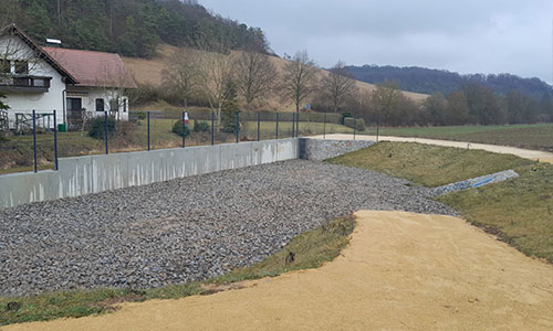 Ein zentrales Element des Projekts ist das Regenrückhaltebecken, das mit einem Drosselablauf und einer Stahlbetonstützwand ausgestattet wird. Dieses Becken dient der Rückhaltung von Regenwasser und der kontrollierten Ableitung in das Entwässerungssystem.